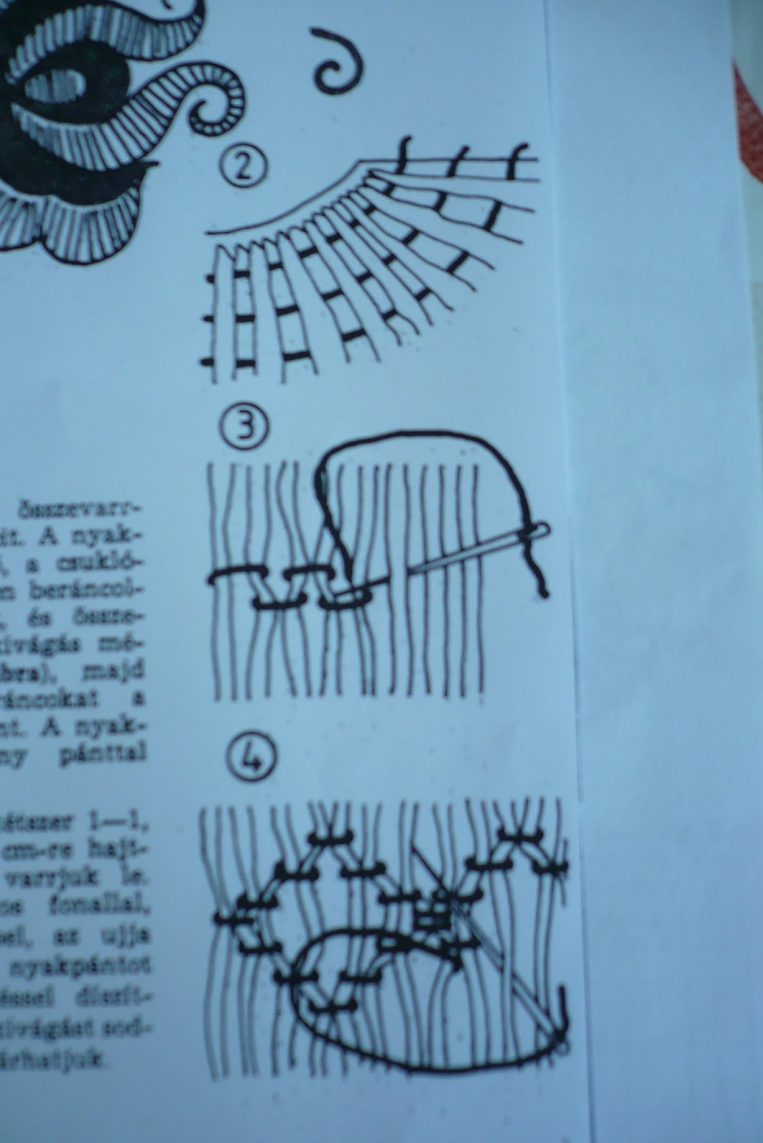 Hímzés után összevarrjuk a blúz részeit.A nyakkivágáson kb; 5,a csuklónál 3 cm szélesen beráncoljuk az anyagot,és össze húzzuk a nyakkivágás méretére. ( 1-2.ábra )